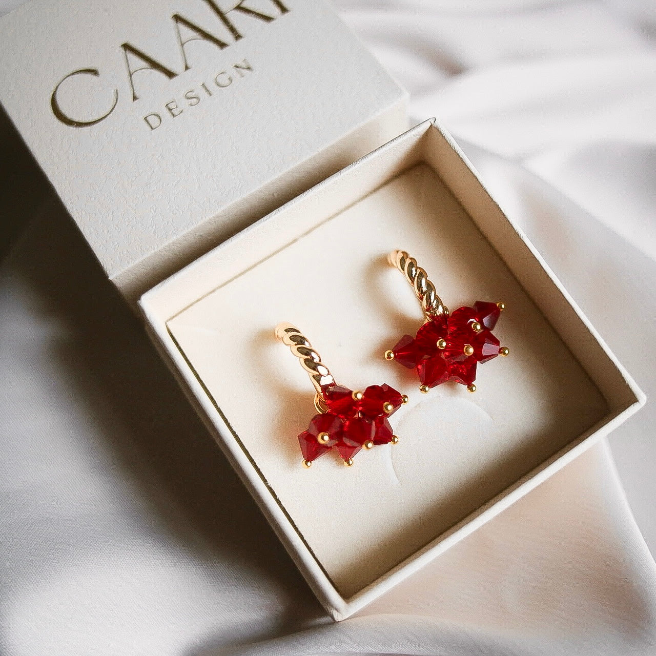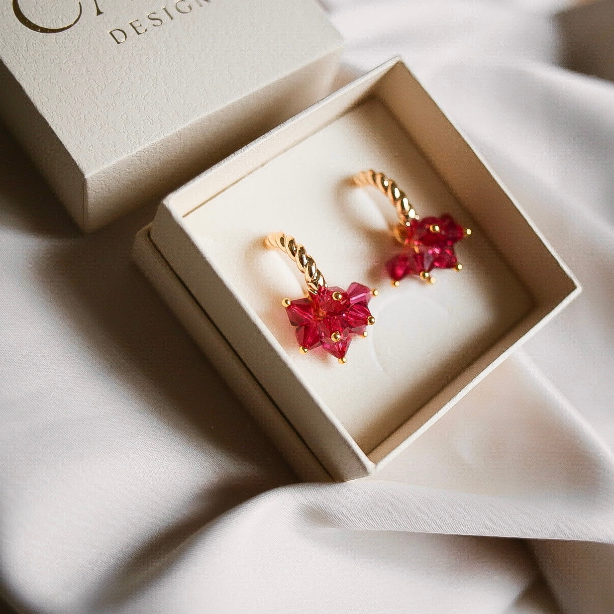 Eleonora -korvakorut ovat kuin pieni kunnianosoitus sisäiselle kuningattarellesi. Näissä koruissa yhdistyvät Swarovski kukkakiteet ja ylellinen kultainen punottu rengas, joka hehkuu valoa jokaisesta liikkeestäsi.