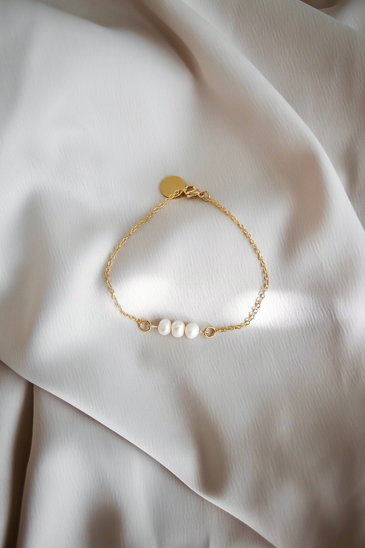 Minimalistinen ja ajaton Helmirivi-rannekoru yhdistää kolme kaunista makeanveden helmeä sirossa 24 karaatin kullatussa ketjussa. Nikkelivapaa materiaali tekee korusta miellyttävän käyttää joka päivä.