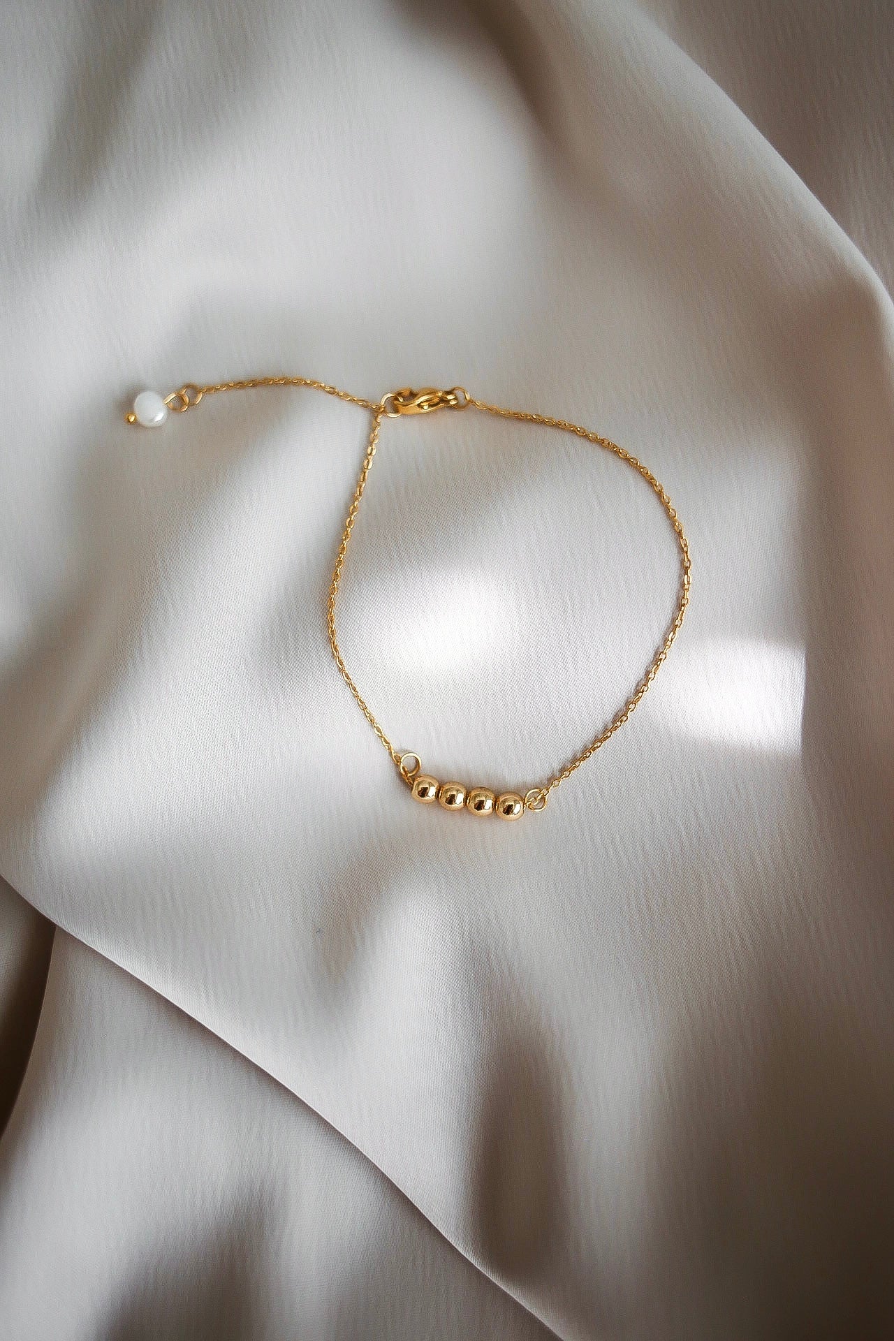 Jade-rannekoru sopii täydellisesti sekä arkeen että juhlaan. Korua koristaa kultaiset metallihelmet sekä pieni kaunis makeanveden helmi, joka tekee jokaisesta rannekorusta ainutlaatuisen. Rannekoru pakataan kauniiseen korulaatikkoon, joten se on myös ihana lahjaidea.