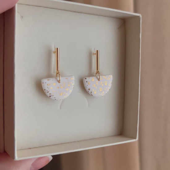 Julia korvakoruissa on kaunis kimalteleva kultapäällystys . Täydelliset korvakorut juhlaan. Korvakoruissa on nappi kiinnitys.