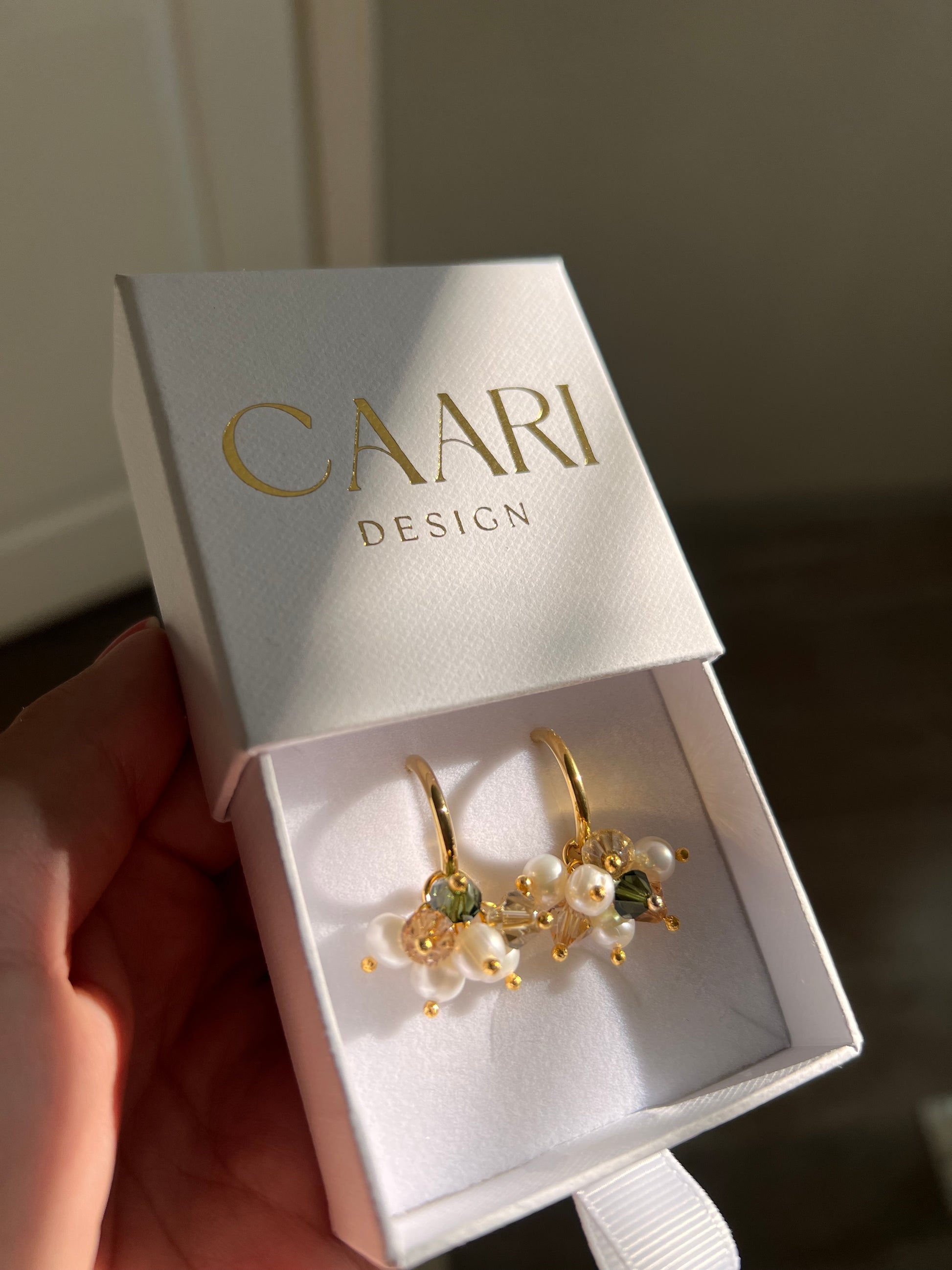 Jokainen korupari valmistetaan käsityönä Suomessa Caari Designin työpajassa Kokkolassa. Korujen pohjamateriaali on laadukas, nikkelivapaa kirurginteräs, joka on päällystetty aidolla 24k kullalla – säilyttäen kiiltonsa ja arvokkuutensa vuodesta toiseen.
