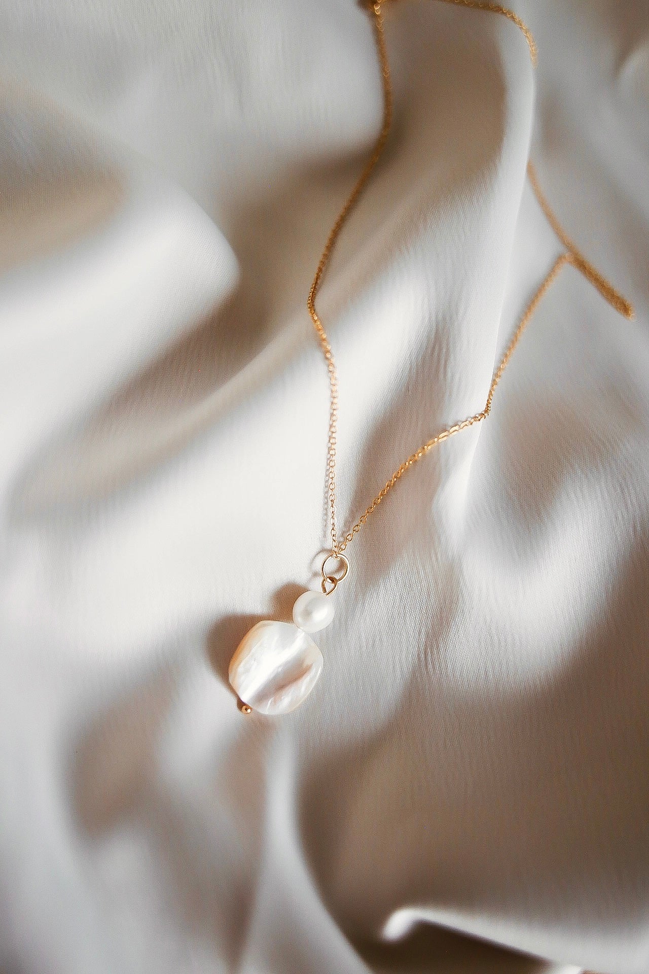 Saima Kaulakoru. Jossa koristaa aito makeanveden helmi sekä iso simpukkakuorihelmi.Vaihtoehtona kullattu ja hopeat osat