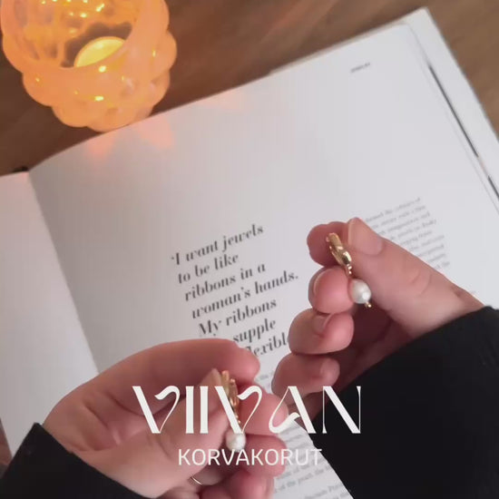 Vivan korvakorut. Viivan korvakorun renkaat ovat hieman paksummat kun lovis korvakorut. Korvakoruja koristaa kaunis aito makeanveden helmi. Nämä korvakorut koristavat asuasi arjessa sekä juhlassa. Korvakorut tulevat laadukkaassa korurasiassa.